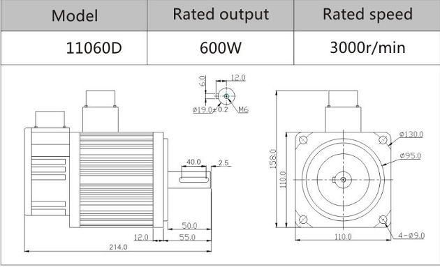 GH-11060DC is 600W servo motor , 110 frame, big load, and mataching with big servo driver, is very specially model between 400W and 750W servo motor.