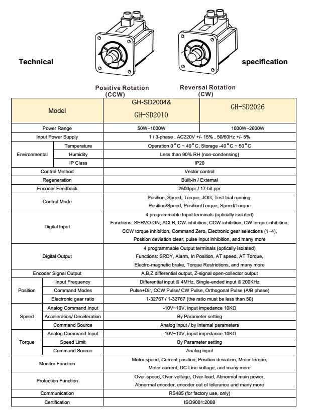The match servo driver, GH-SD2026 & GH-301 that matching for 2.0KW servo motor.